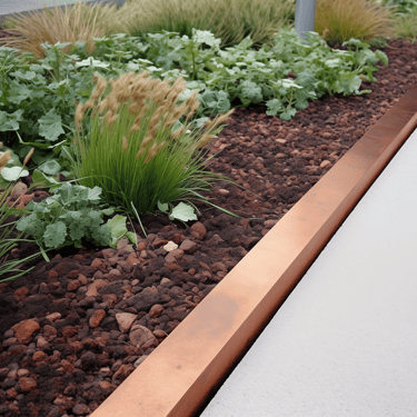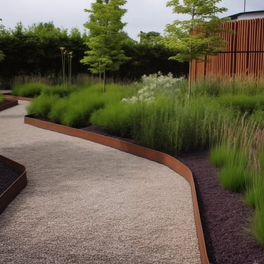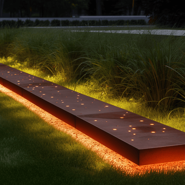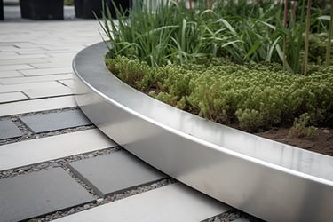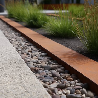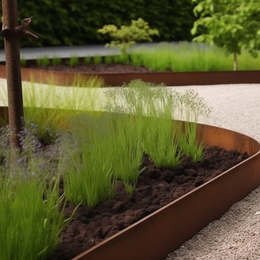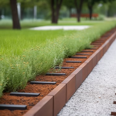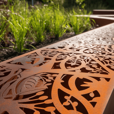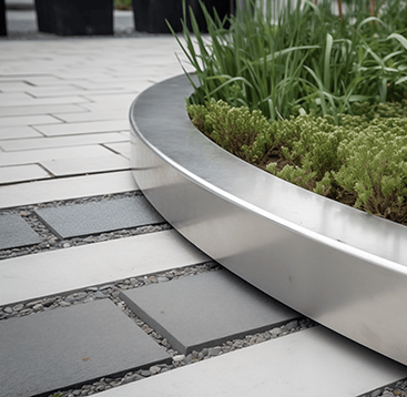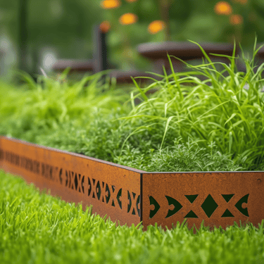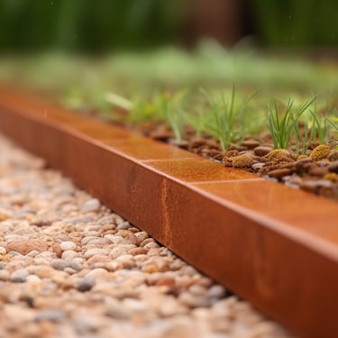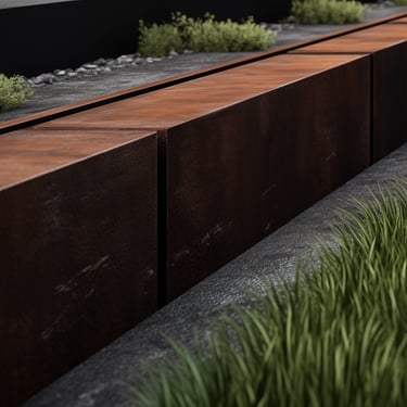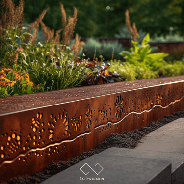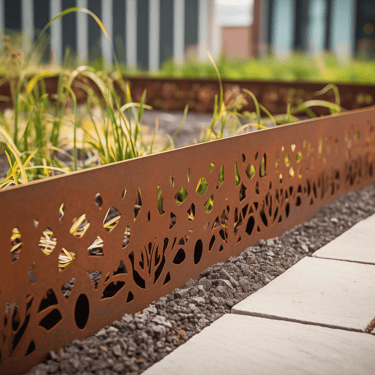 Tokios medžiagos kaip corten plienas ar nerūdijantis metalas yra ypač ilgaamžės ir atsparios aplinkos poveikiui. Pasirinkus didesnį metalo storį, borteliai tampa itin tvirti – jie atlaiko ne tik vaikščiojimą ar užlipimą, bet ir automobilį, neprarasdami savo formos.