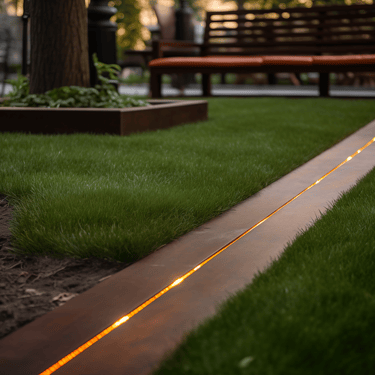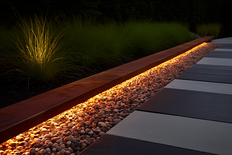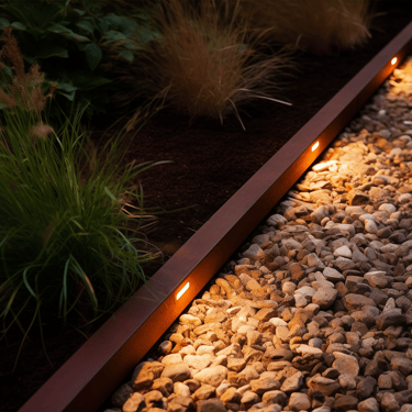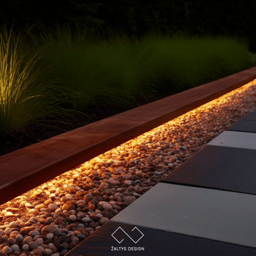Į bortelius galime integruoti apšvietimo sprendimus, kurie nukreipia šviesą į takus ar augalus, todėl nereikia papildomų lauko šviestuvų. Tai padeda išlaikyti švarią, neperkrautą kiemo erdvę ir sukuria subtilų, estetišką apšvietimo efektą.